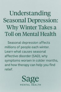 Therapy & Wellness Insights Understanding Seasonal Depression: Why Winter Can Feel Heavier on Your Heart What Is Seasonal Depression? Seasonal depression, also called Seasonal Affective Disorder, is a form of depression that follows a